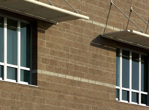 When used as a field, the course module of 4-inch high cmu creates a more traditional scale, expressing the warmth of historical masonry. 4-high units are also effective as banding elements to add sightlines and interest to large elevations.