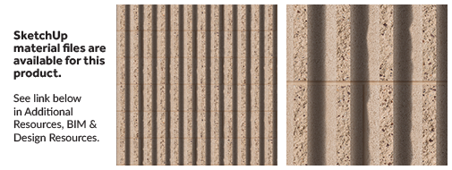 Narrow flutes and deep, rounded indentations create a profile and texture that changes with the angle of the sun. Split flutes reveal the aggregate matrix for a randomly surfaced, hewn look.