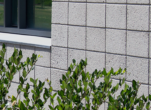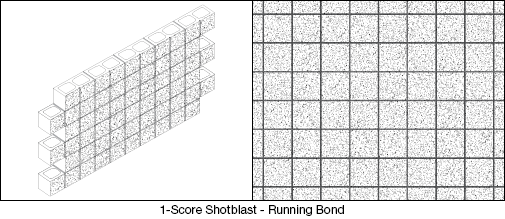 A single vertical score mid-length, 3/8-in wide and deep, simulates a raked joint. For typical cmu with an 8-in by 16-in face, the effect is a grid of 8×8 squares that can effectively add accent or interest to the elevation.