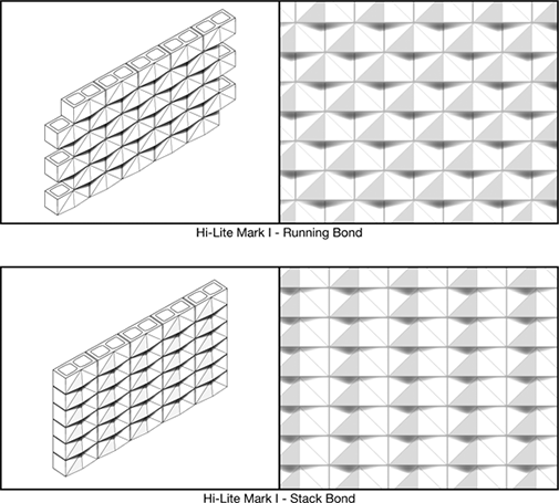 Popouts, angles, and overhangs enliven walls with contrasts of highlights and shade. Use them as individual units for accent, or in fields for pattern and texture.