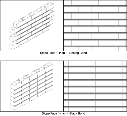 An extra inch in width at the bottom of the Slope Face 1-Inch unit creates a strong horizontal shadow line and a sawtooth side profile.
