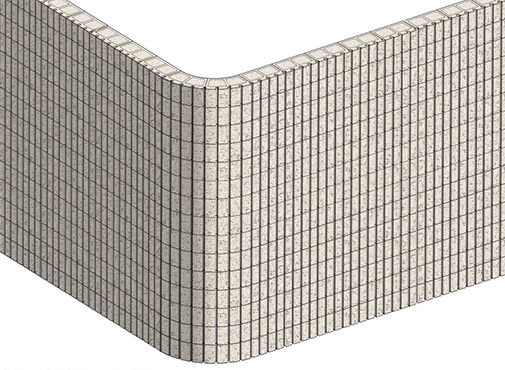 This unit provides a radius corner with a deep score split pattern that is compatible with the 4-Score Split cmu.