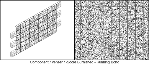 A single vertical score mid-length, 3/8-in wide and deep, simulates a raked joint. For typical cmu with an 8-in by 16-in face, the effect is a grid of 8×8 squares that can effectively add accent or interest to the elevation.