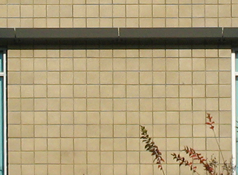 A single vertical score mid-length, 3/8-in wide and deep, simulates a raked joint. For typical cmu with an 8-in by 16-in face, the effect is a grid of 8×8 squares that can effectively add accent or interest to the elevation.