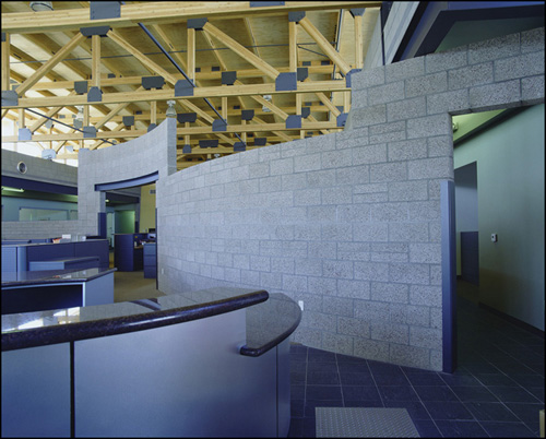 2004 CMACN Design Awards winner: Commercial Grand Award. Charcoal Precision and Charcoal Split Face fields, and Slate Precision in 4-inch bands.