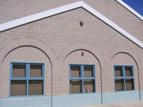 Natural Gray, field sandblasted, and glazed CMU accents.