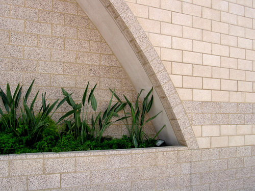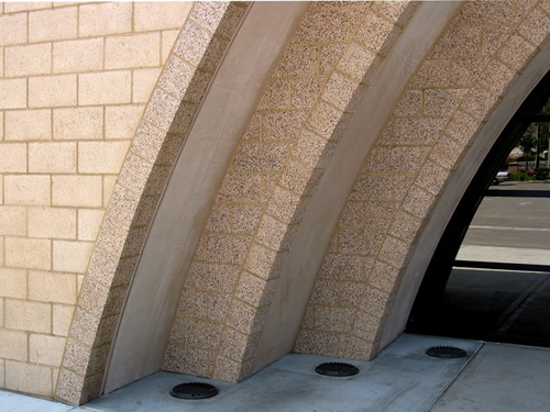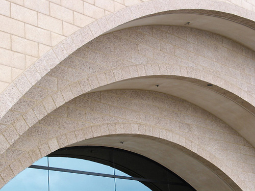 Canyonbluff in Precision and Burnished textures are used in dramatic fashion: offset, concentric arches, and corbeled walls that project outward from course to course.