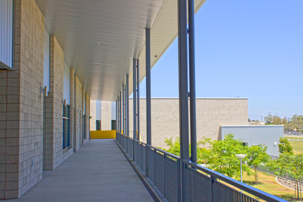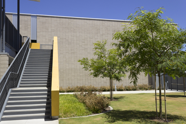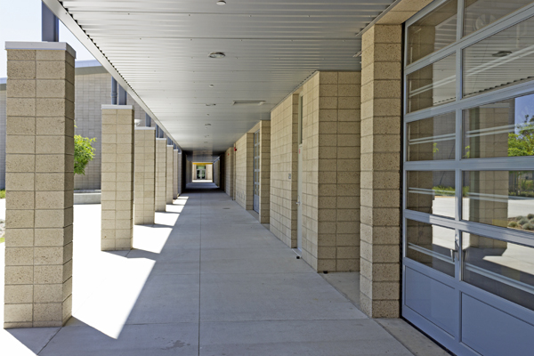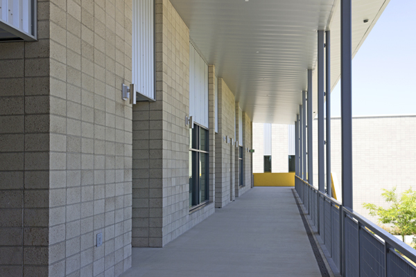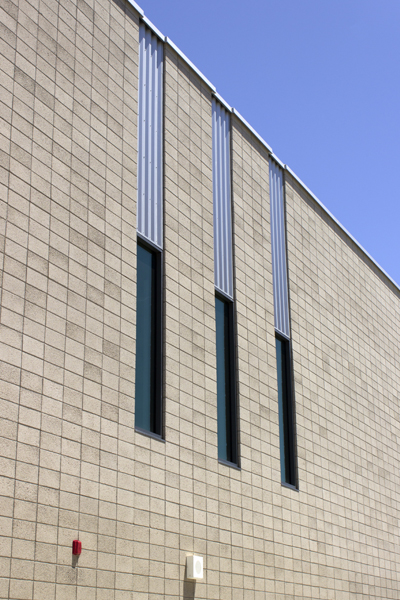 The genius in the design of this project is in its brilliant simplicity. Natural Gray cmu with a Shotblast texture softens the effect of large fields laid in stack bond, allowing the thoughtful details front stage. Designed to The Collaborative for High Performance Schools (CHPS) Verified guidelines, the school incorporates many energy-saving and clever runoff control measures.