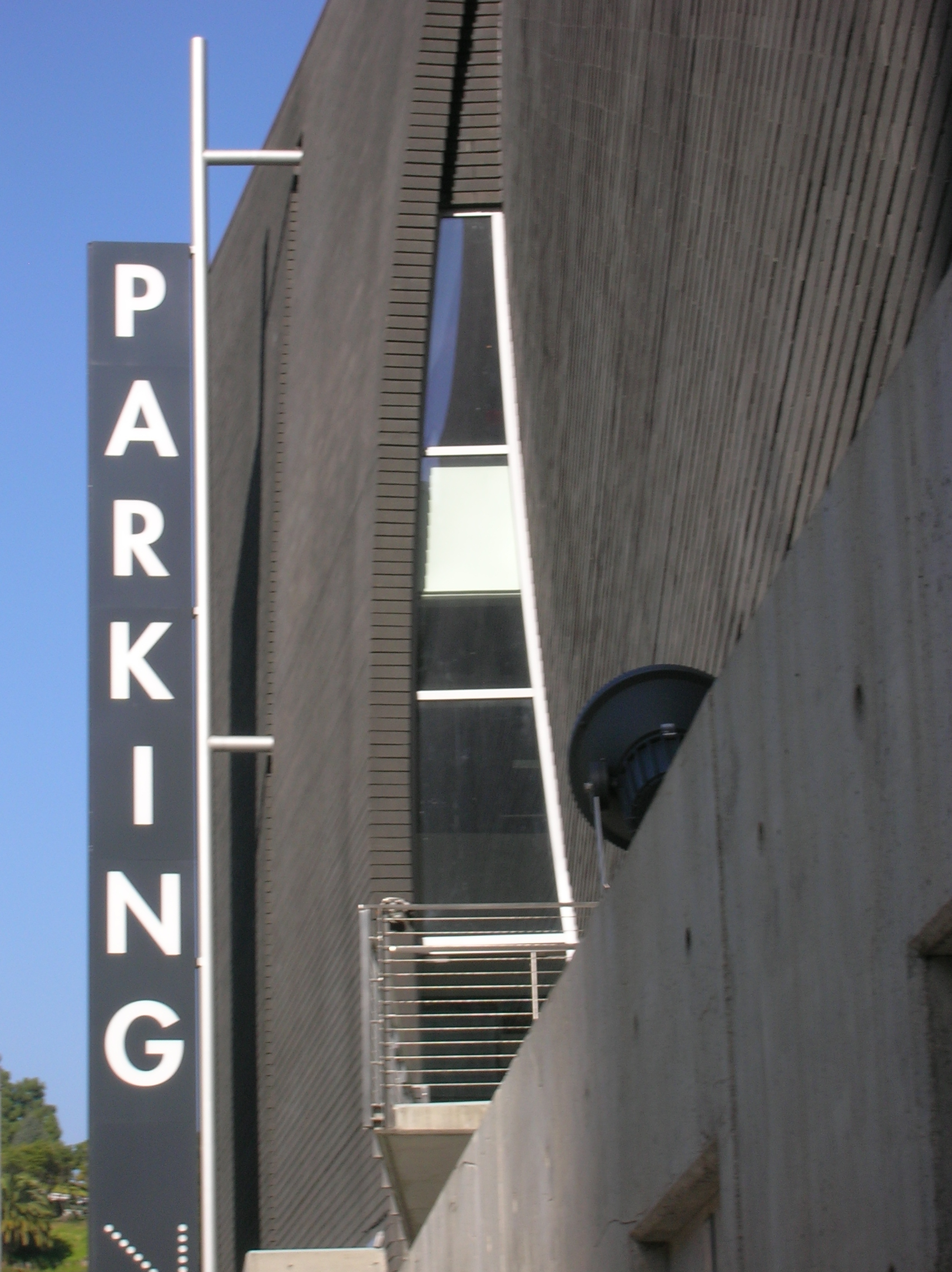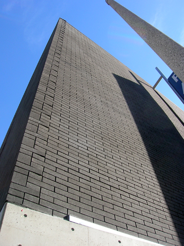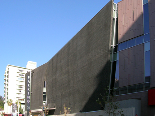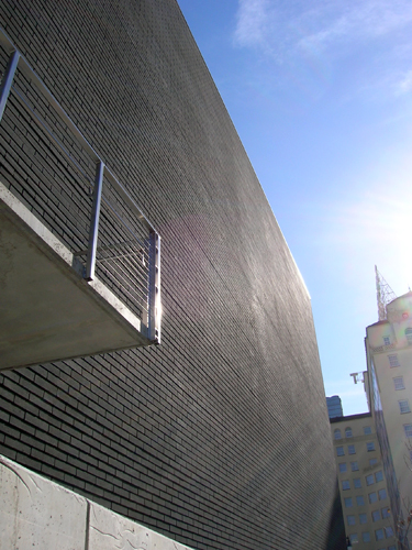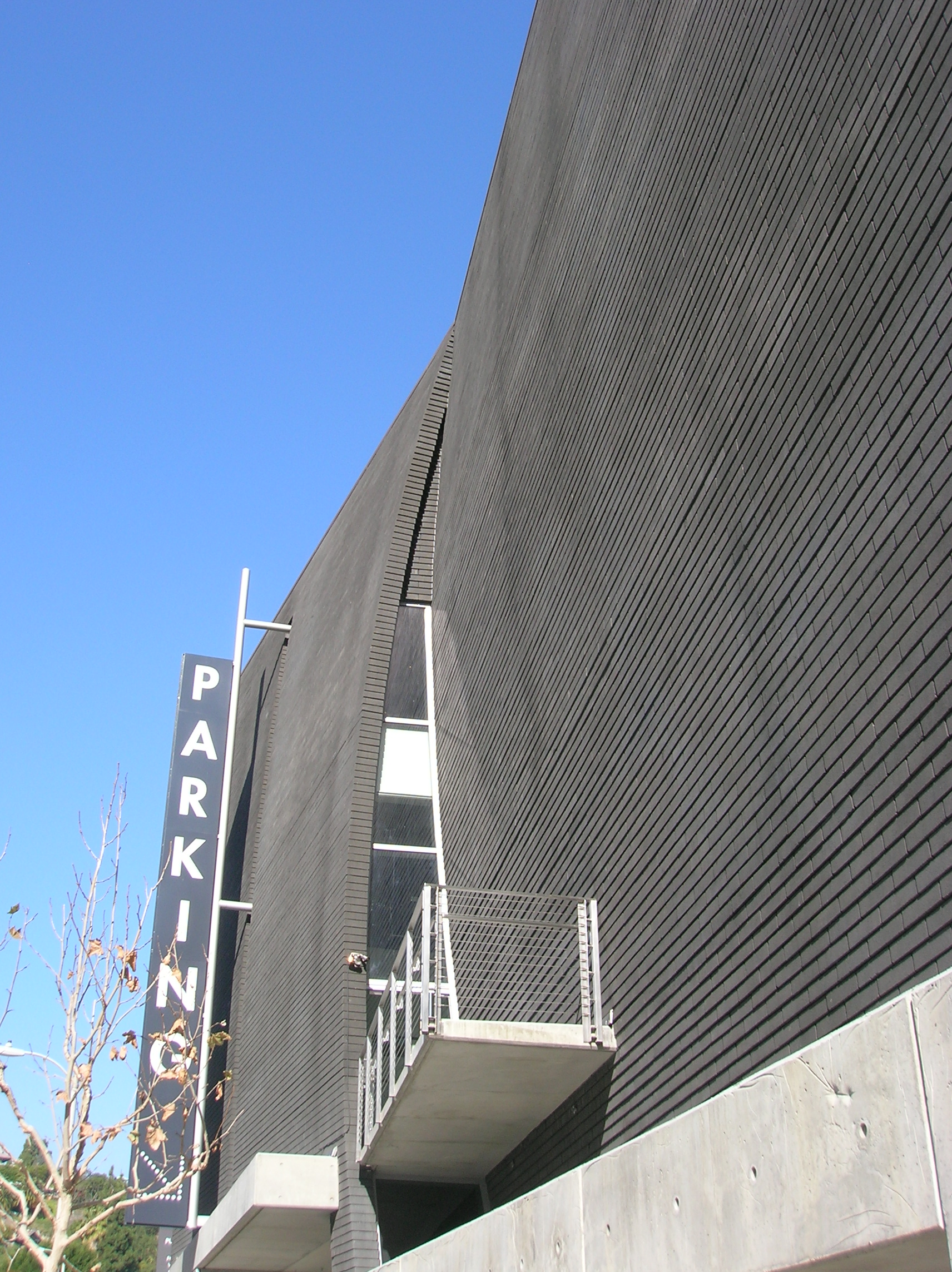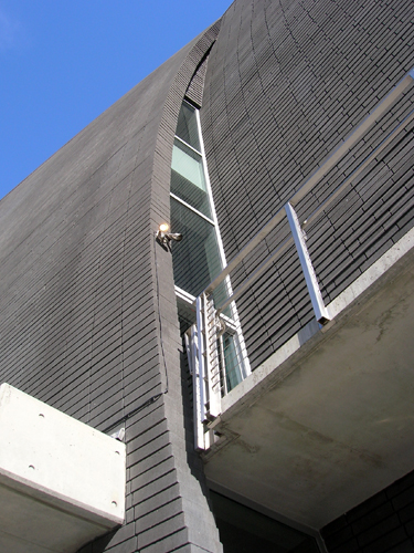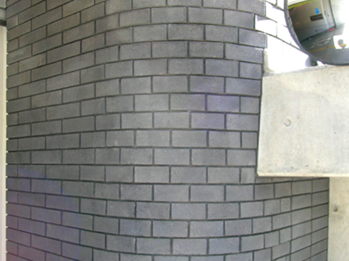Cantilevered, curvilinear walls highlight this project, constructed of Ebony Precision units in 4-inch high and 8-inch high.