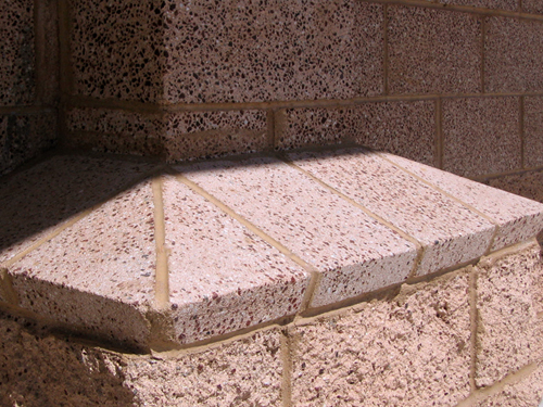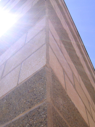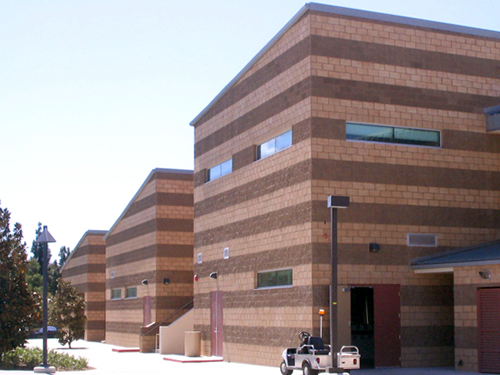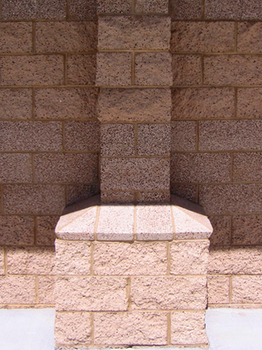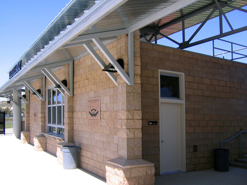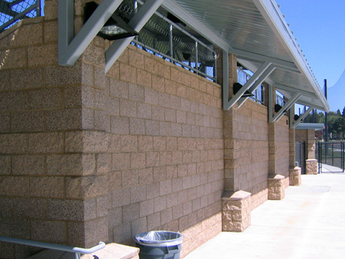 Buildings exhibit strong bands of Champagne Precision and Oak Split Face. Sport field structures have more subtle banding with Champagne Split Face and Burnished.