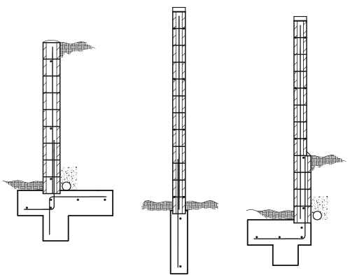 A collection of details for masonry fence walls and retaining walls utilizing a conventional grout and rebar structural system.