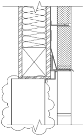 The basic elements of a veneer application above an opening, including a steel angle lintel and flashing.