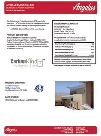 CarbonKindTM CMU by Angelus Block significantly lowers CO2e well below the Carbon Leadership Forum’s (CLF) 2021 Material Baselines (v2) for concrete masonry units, and 2023 CLF Material Baselines Appendices. Medium Weight (MW) CMU are the predominant product type used in buildings.Medium Weight (MW) CMU are the predominant product type used in buildings.